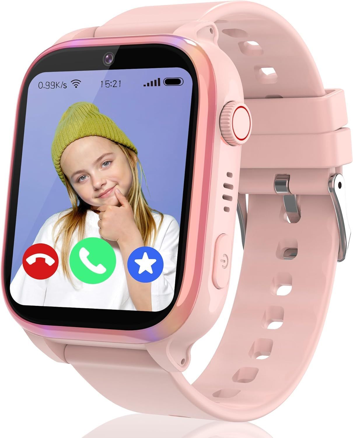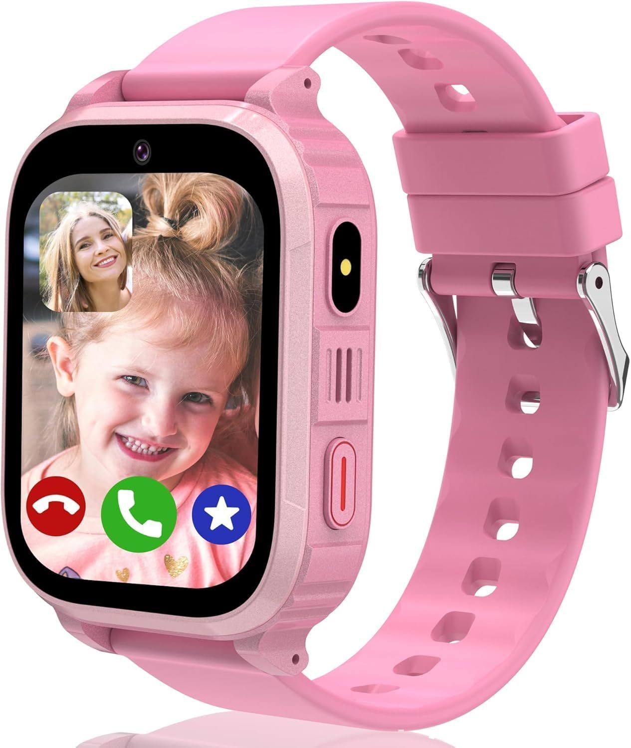 PTHTECHUS Montre Connectée Enfant, 4G GPS Montre Intelligente Enfants, Smartwatch Téléphone pour Fille Garçon avec Réveil, Caméra, Jeux, Cadeau 4 à 12 Ans, Rose Vif