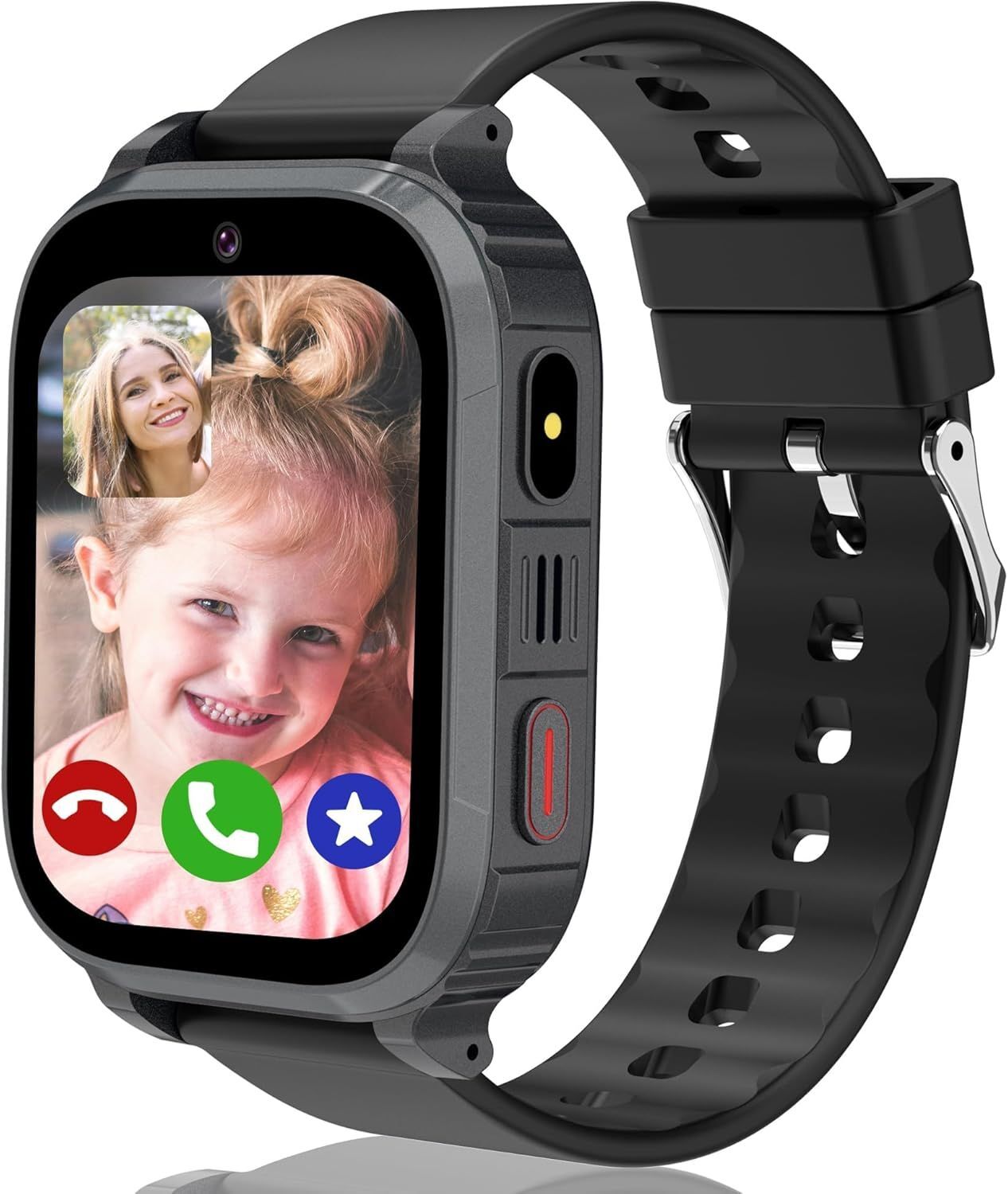 Montre Connectée Enfants GPS, 4G Smartwatch Téléphone pour Filles et Garçons avec Appel, Vidéo, SOS, Chat, Mode Classe Podomètre, Jeux, Réveil, Montre Intelligente Enfant 4 à 12 Ans Cadeau, Noir