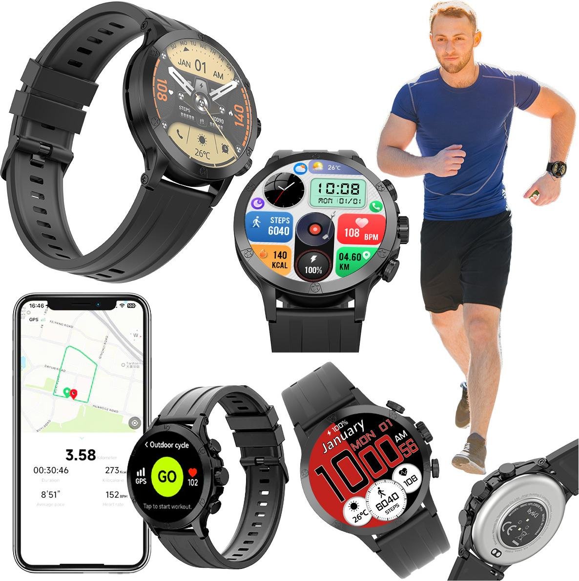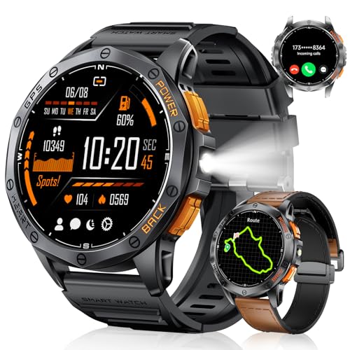 SUNKTA DM1 Montre Connectée Homme GPS, La Boussole/Lampe De Poche LED, 1.43" AMOLED Smartwatch, 170+Sportifs/Podometre/IP68 Etanche Montre Running Homme, Smart Watch avec Android iOS