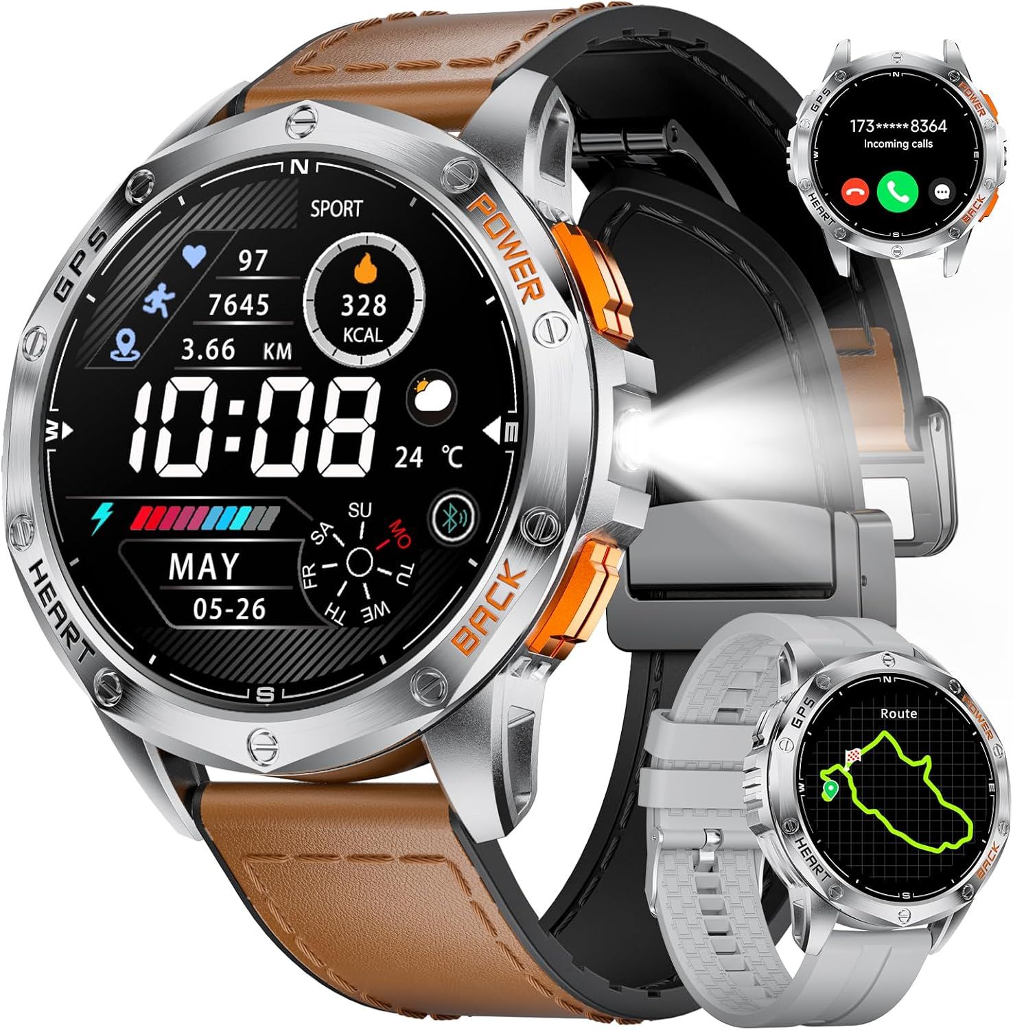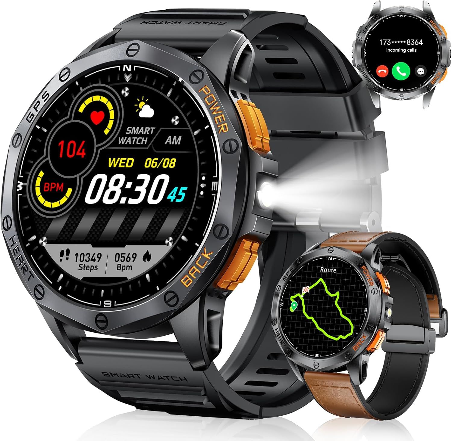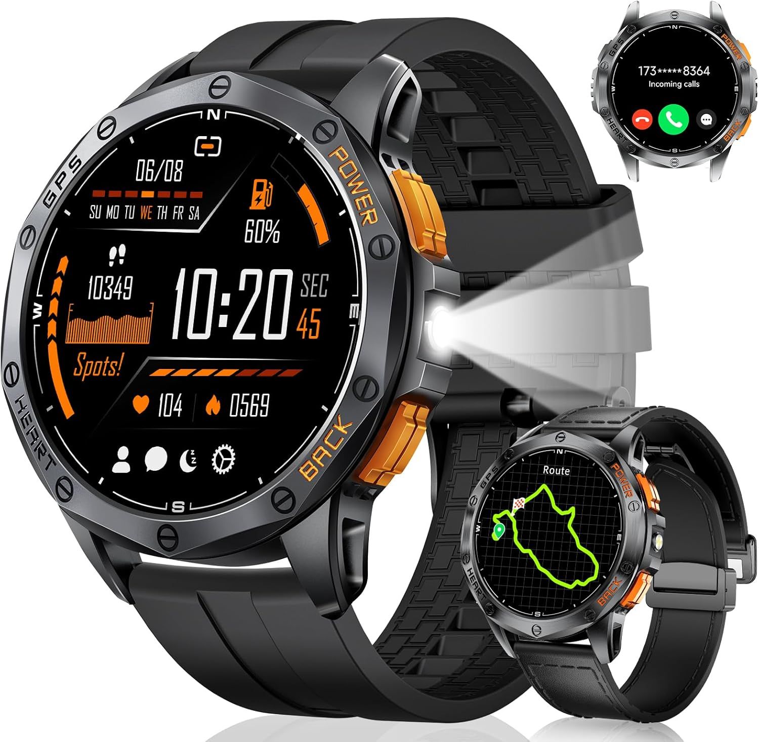 Sunkta Dm1 Montre Connectée Homme Gps, La Boussole/Lampe De Poche Led, 1.43"" Amoled Smartwatch, Podometre/Sommeil/170+ Sportifs/Ip68 Montre Running Homme, Montre Intelligente Avec Android Ios