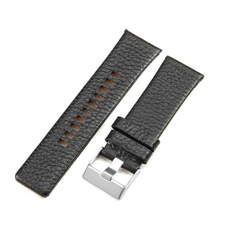 ROUHO Bracelet de Montre en Cuir Véritable Grand Cadran, Bande de Remplacement Durable Étanche Montre Homme pour Diesel-Noir + Argent Boucle 27mm