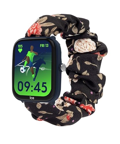 Lamshaw Chouchou Bracelet Compatible avec ICE-WATCH ICE junior 2.0 1.75''Pouces Smart Watch wellness, en Tissu Imprimé Élastique Bracelet de Montre du ICE junior 2.0 Wellness Smartwatch (Fleur noire)