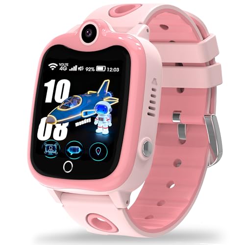 PTHTECHUS Montre Intelligente pour Enfants 4G, Montre téléphone avec Fonction d'appel, appels bidirectionnels, Appareil Photo, MP3, SOS, Carte d'apprentissage, Cadeau pour garçons Filles Rose