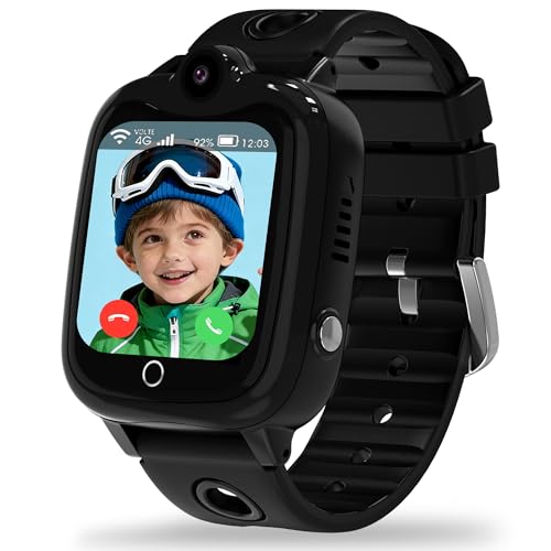 4G Montre Connectée Enfant,Smartwatch Téléphone pour Filles Garçons avec GPS, SOS, WIFI, Appels/Vidéo/Voix Chat, IP68 Étanche Jeux Réveil Mode Classe, Montre Intelligente Enfants Cadeau (Noir-GPS)