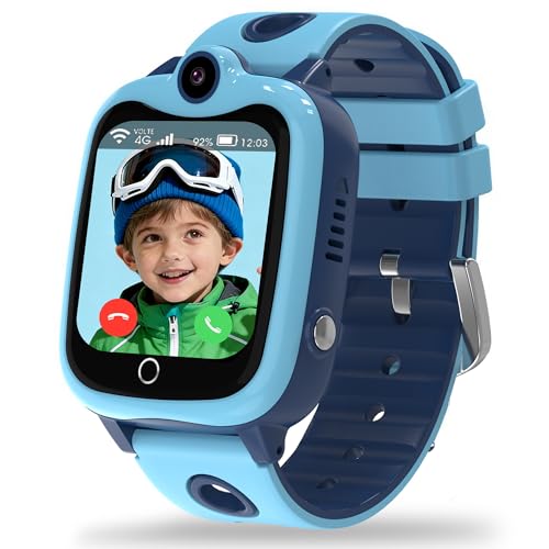 4G Montre Connectée Enfant,Smartwatch Téléphone pour Filles Garçons avec GPS, SOS, WIFI, Appels/Vidéo/Voix Chat, IP68 Étanche Jeux Réveil Mode Classe, Montre Intelligente Enfants Cadeau(Bleu-GPS-4G)