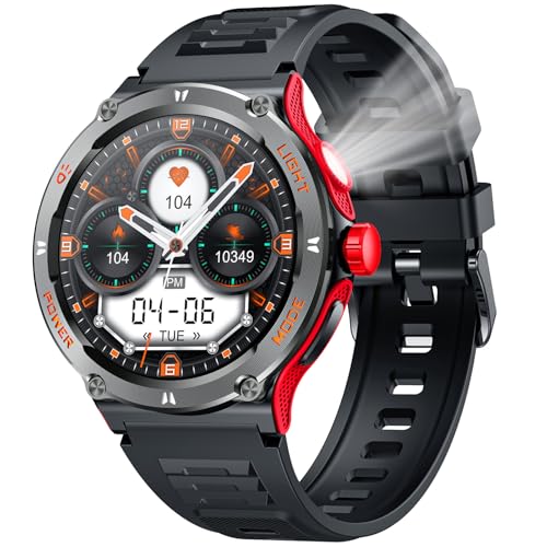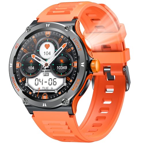 Montre Connectée Homme Sport Watch: Smartwatch Militaire avec Appels Bluetooth 1.53" Écran Ronde Montre Fitness homme avec Lampe de Poche LED Compas étanche 4ATM Smart Watch pour Android Phone iphone