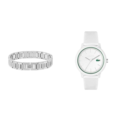 Lacoste Montre Analogique à Quartz pour Homme avec Bracelet en Silicone Blanc - 2011169 Bracelet à maillons pour Homme Collection Metropole Embelli avec Motif Petit piqué - 2040117