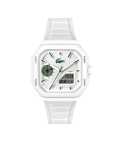 Lacoste Montre Quartz Multifonction Analogique-Digitale pour Femme Collection LC33 avec Bracelet en Silicone Blanc - 2001430