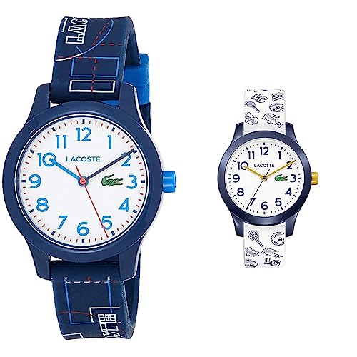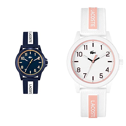 Lacoste Montre Analogique à Quartz pour Enfants avec Bracelet en Silicone Bleu Marin - 2030008 & Montre Analogique à Quartz pour Enfants avec Bracelet en Silicone Blanc - 2030011