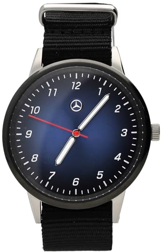 Mercedes-Benz Montre pour Homme, 42 mm, Acier Inoxydable/Nylon, Mouvement à Quartz Miyota, étanche 5 ATM, Verre minéral, Noir/Bleu