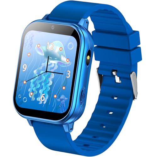 PTHTECHUS Montre Intelligente pour Enfant avec Appareil Photo HD, Lecteur MP3, 22 Jeux Éducatifs, pour Enfants de 3 à 12 Ans, Bleu