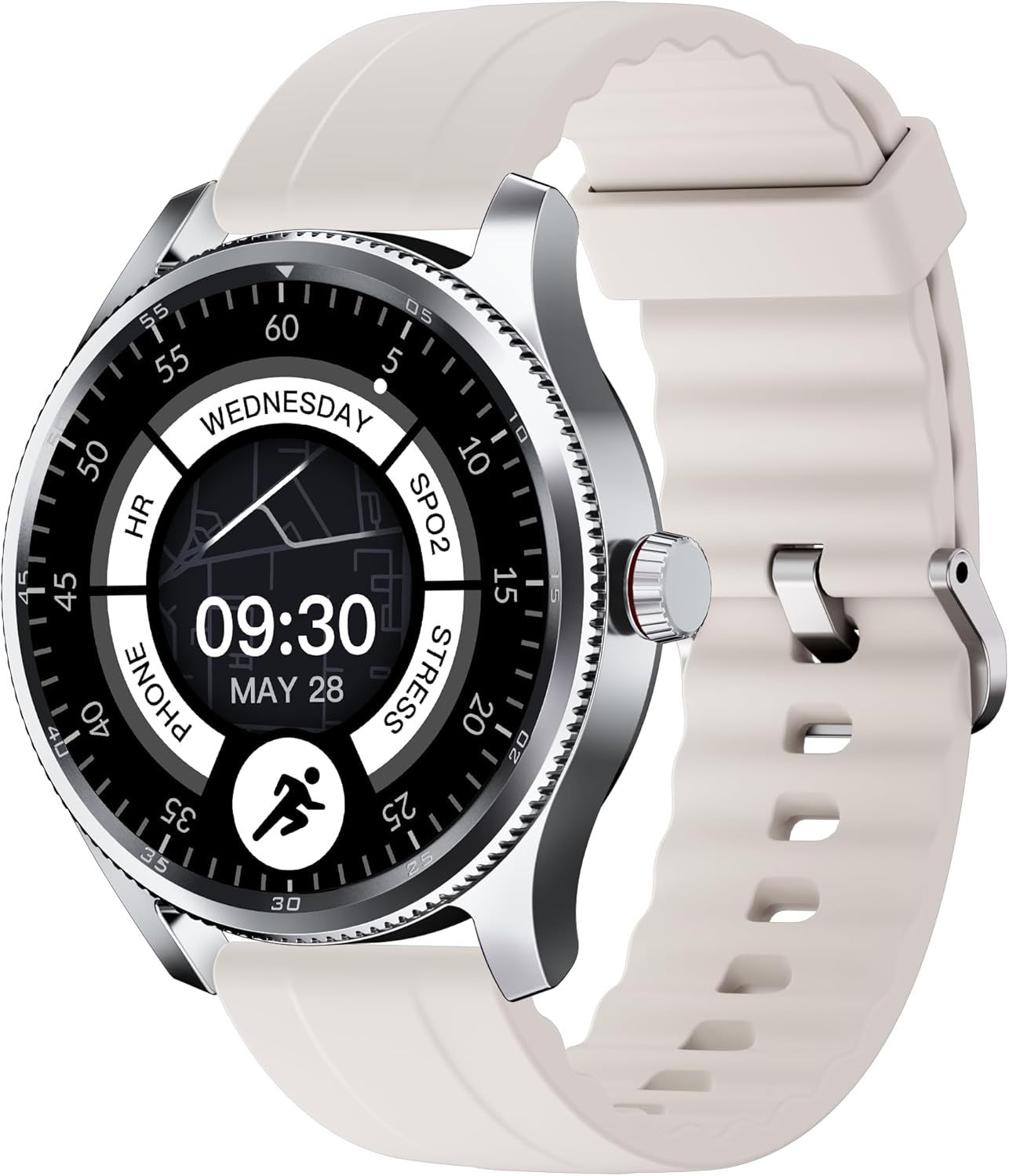 antfit Montre Connectée Femme, Écran AMOLED Ultra-Clair, Étanche 3ATM Natation, Appels Bluetooth, Suivi Cardio/Sommeil/100 Sports, Compatible Téléphones Android et iOS, Beige