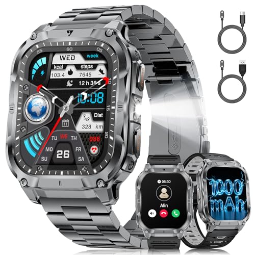 Montre Connectée Homme, 1.39" HD Militaire Smartwatch avec Appel Bluetooth, Smart Watch Homme avec 110+ Modes Sportifs/Cardiofrequencemetre/Sommeil, Etanche IP68 Montre Intelligente pour Android iOS