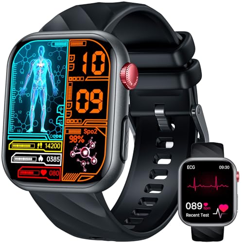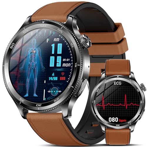 Montre Connectée Homme Santé Smartwatch: avec ECG PPG HRV Acide Urique Appels Bluetooth 130+ Modes Sportifs Sommeil Fréquence Cardiaque SPO2 Podomètre Étanche 1.97" Écran Montre Sport pour Android iOS