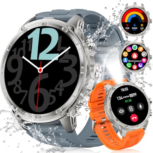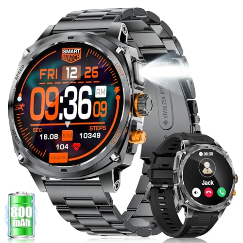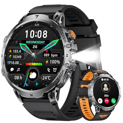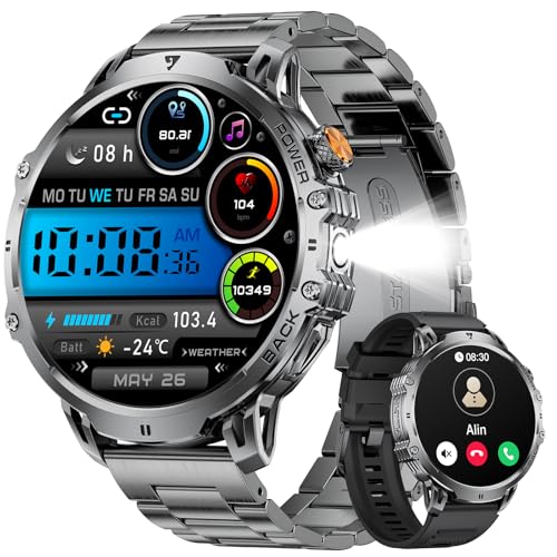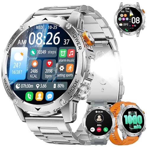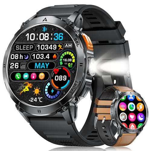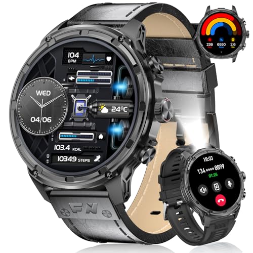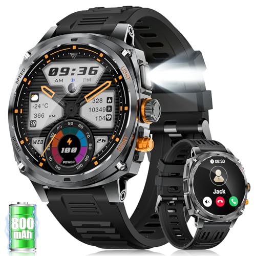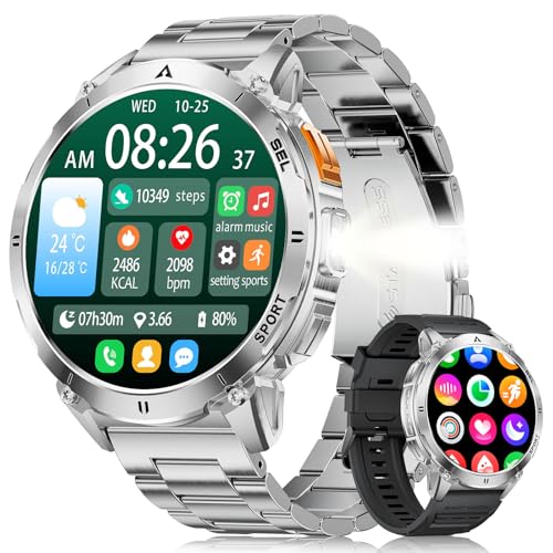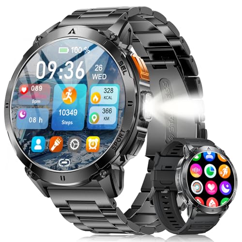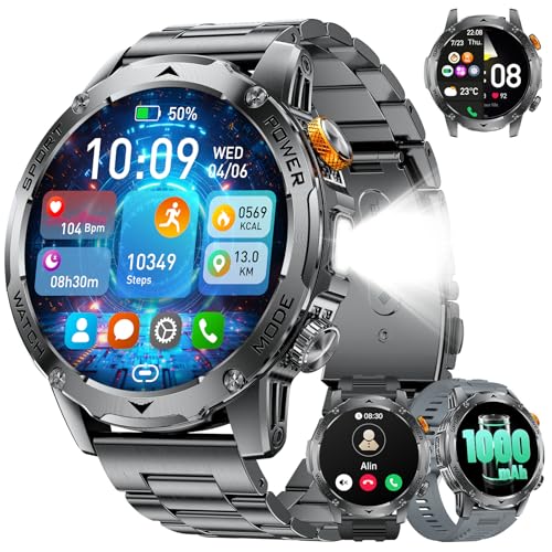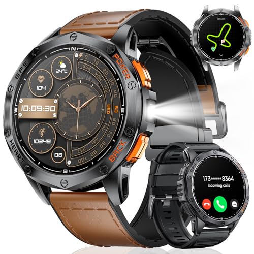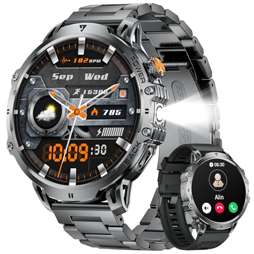 Montre Connectée Homme 2025, Appels Bluetooth Watch, Batterie 960mAh, Boussole, Lampe de Poche Smartwatch, 100+ Modes Sportifs, Analyse de la Fréquence Cardiaque et du Sommeil, pour Android/iOS