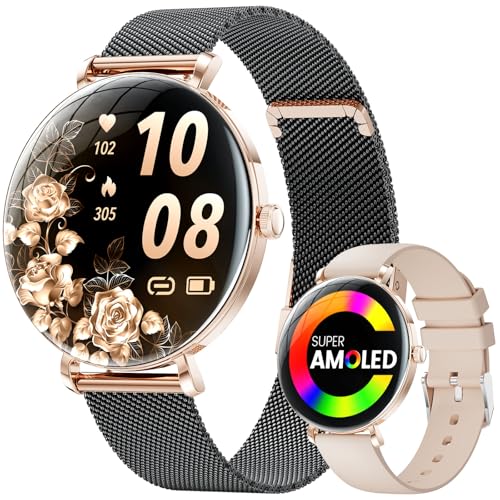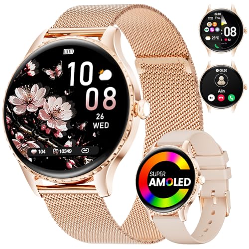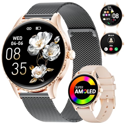 Montre Connectée Femme avec Appel Bluetooth Affichage Permanent Écran AMOLED Smartwatch pour Android iOS Montre Sport Femme Moniteur de Sommeil Fréquence Cardiaque 110+ Modes Sportifs Podomètre