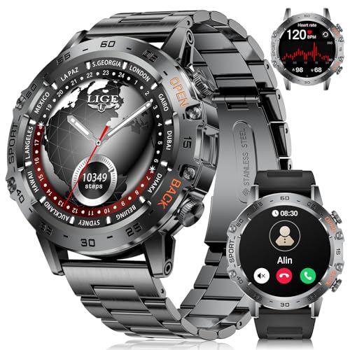 LIGE Montre Connectée Homme avec Appel Bluetooth, 1,85" Grande Smartwatch avec 1000mAh Batterie, LED Lampe Torche, 100+ Sportmodi, Fréquence Cardiaque, Moniteur de Sommeil pour iOS Android