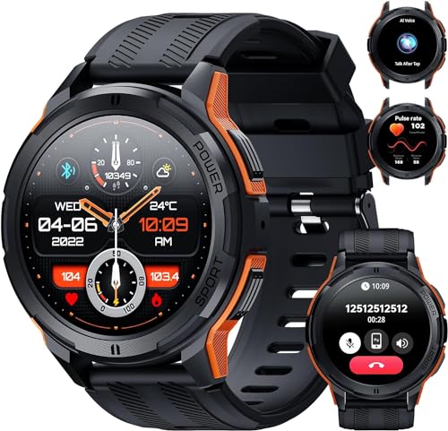 IOWODO Montre Connectée Homme, Appels Bluetooth, Batterie 960mAh, Boussole, Lampe de Poche, 100+ Modes Sportifs, Analyse de la Fréquence Cardiaque et du Sommeil, pour Android/iOS