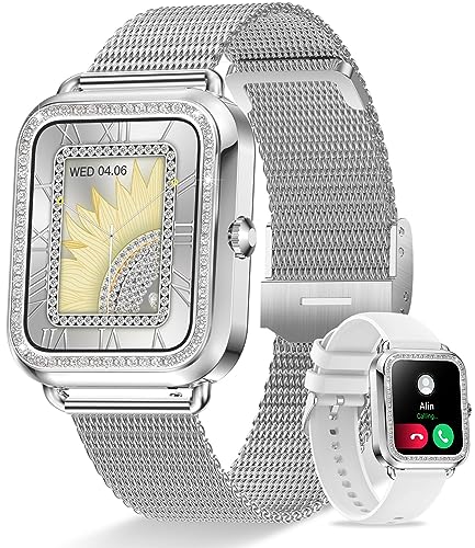 Iaret Montre Connectée Femme avec Appels Bluetooth, 1,85" HD Smartwatch pour Android & iOS, Montre Sport avec Podomètre, 100+ Modes Sportifs, Sommeil, Fréquence Cardiaque, Cycle Menstruel, Blanc