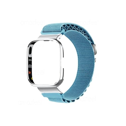 UsmAsk Bracelet en Nylon + boîtier en métal for Montre Redmi Watch 2 Lite, Bracelet Actif Redmi Watch 3 for Xiaomi Mi Watch Lite (Color : Blue-Silver Case, Size : Redmi Watch 3 Active)