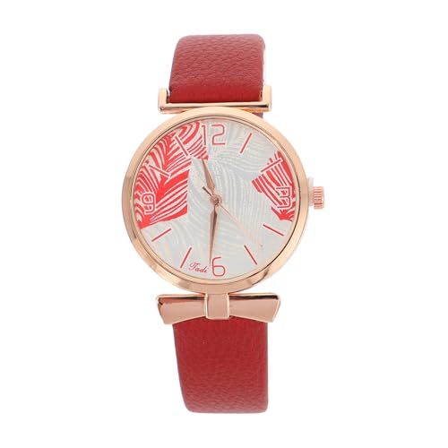 Montre-bracelet à quartz pour femme - Bracelet doré - Montre simple pour femme, Rouge, taille unique