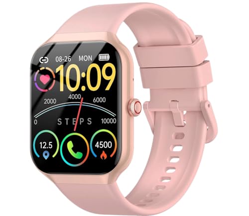 Marsyu 2025 Montre Intelligente pour Femme 1.7" AMOLED Carrée avec Fonction D'Appel,FréQuence Cardiaque 24 Heures,Moniteur de Stress/Spo2/Sommeil,Plus de 100 Modes Sportifs,Montre de Sport IP68 Rose