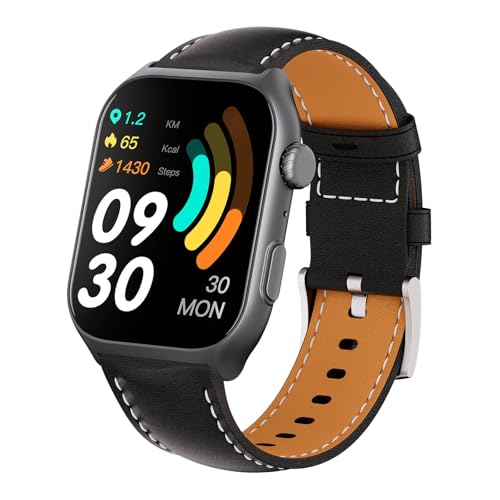 RORIOS Smartwatch pour Hommes Femmes Montre-Bracelet Intelligente Sportifs Fitnes Montres Aktivität Tracker avec Bracelets en Cuir Noir B