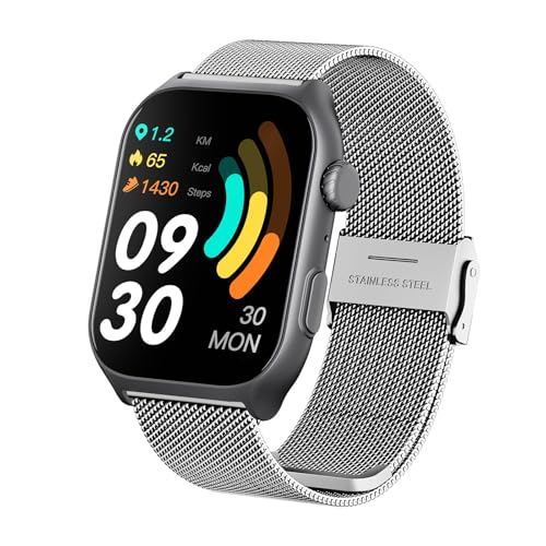 RORIOS Smartwatch pour Hommes Femmes Montre-Bracelet Intelligente Sportifs Fitnes Montres Aktivität Tracker avec Bracelets en Maillé Acier Inoxydable Argent
