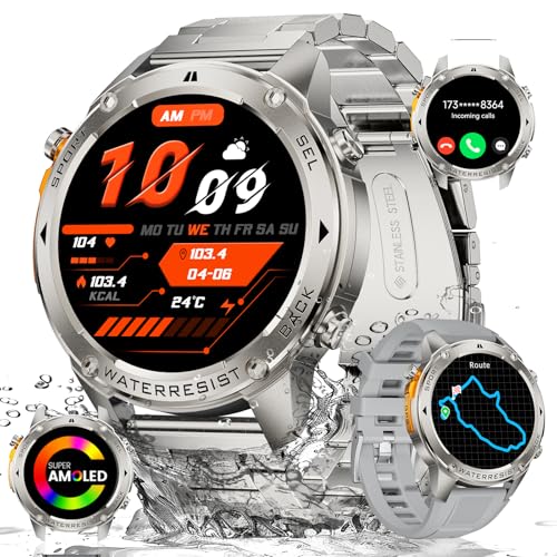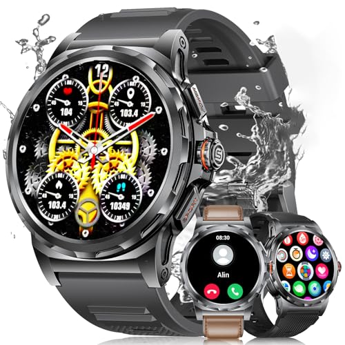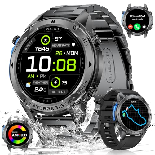 BENYAR SMART Montre intelligente militaire pour homme, appels Bluetooth - 3 bracelets, écran Amoled de 3,7 cm/batterie de 530 mAh, plus de 100 modes sportifs, montre de fitness, étanche IP68, montre
