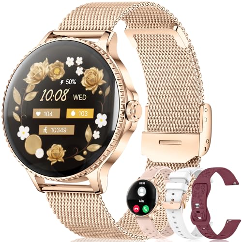 Colesma Montre Connectée Femme avec Appel Bluetooth, 1,27" AMOLED Podometre FréQuence Cardiaque/SpO2/Surveillance du Sommeil, 120+ Sportifs Montre Sport pour Android iOS (Or Rose, 4 Bracelets)