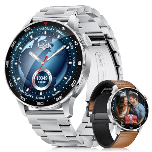 LIGE Montre Connectée Homme avec Appel Bluetooth (2 Bracelets), 1,43" AMOLED Smartwatch avec Batterie 750 mAh, Étanche IP68, Moniteur de Sommeil, 120 Modes Sportifs, Montre Intelligente Android iOS