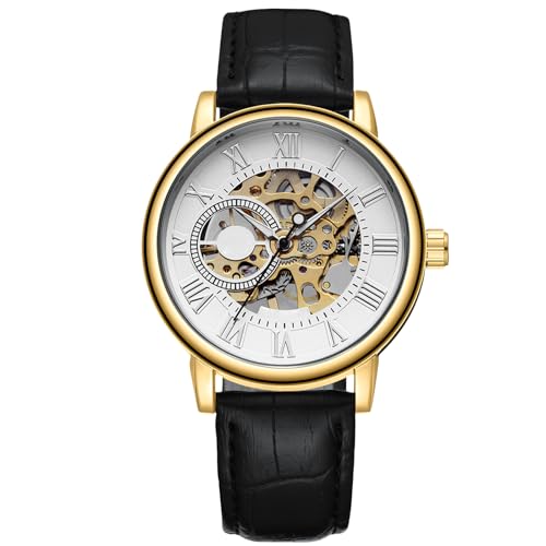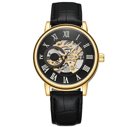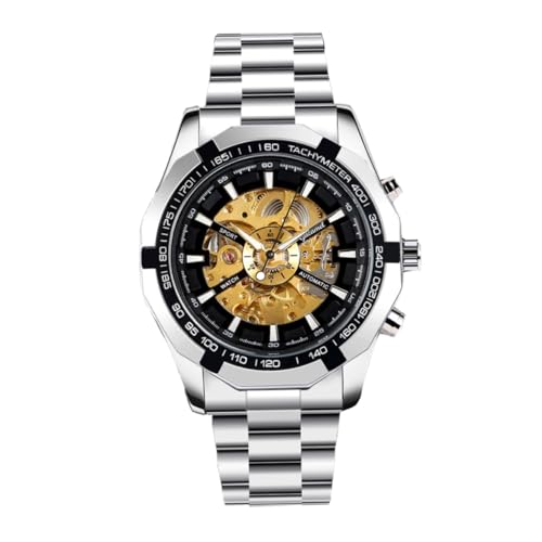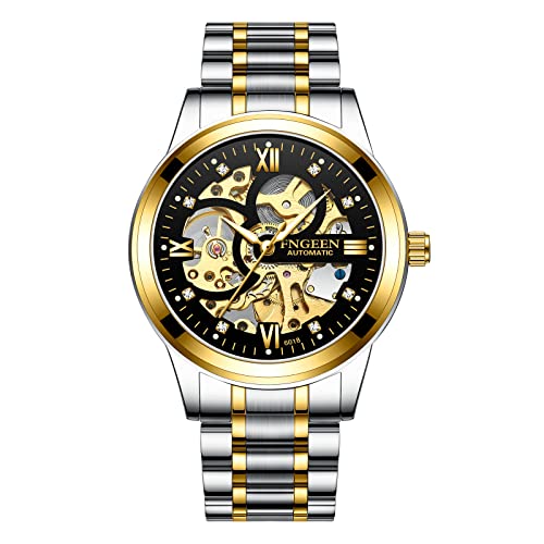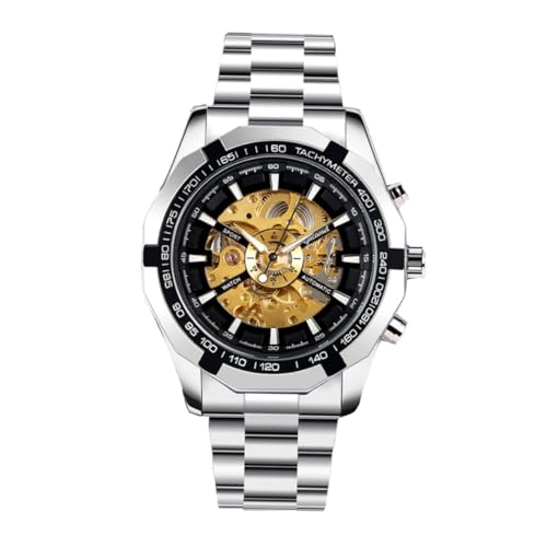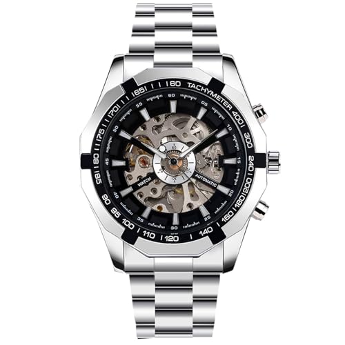 RORIOS Squelette Montre Automatique Mécanique pour Homme avec Bracelet en Acier Inoxydable Lumineuse
