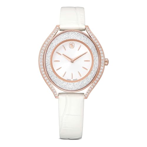 Swarovski Montre Crystalline Aura, Fabriqué en Suisse, Bracelet en Cuir, Blanc, Finition Or Rose