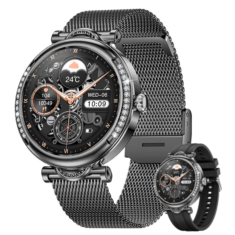 Smartwatch pour femme, montre cardiofréquencemètre avec tensiomètre, répondre/faire des appels, podomètre étanche pour téléphone Android iOS,Femme,noir
