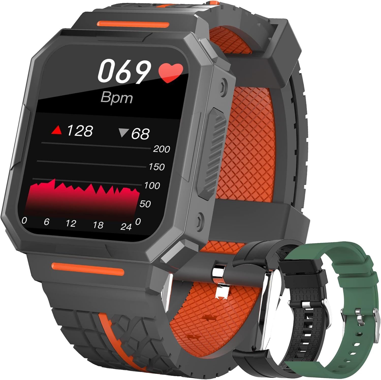 Montre Connectée Homme Femmes, Smartwatch Etanche Avec Tensiomètre, Cardiofréquencemètre, Podomètre,Trackers D'activité, 22 Modes Sportifs Montre De Sport De Plein Air Homme (Orange Noir)