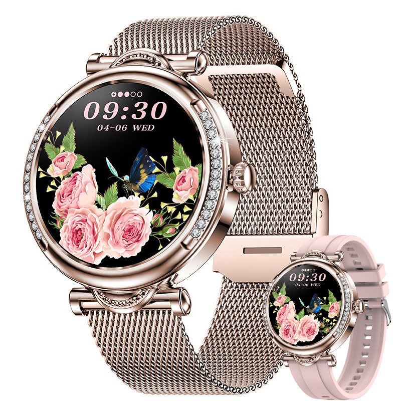 Smartwatch Forevigo 4 Sw-330 - Montre Femme, Amoled, Imperméable, Deux Sangles, Appels Téléphoniques, Modes Sports, Calendrier Menstruel, Tensiomètre, Notifications, Or Rose[Z673]