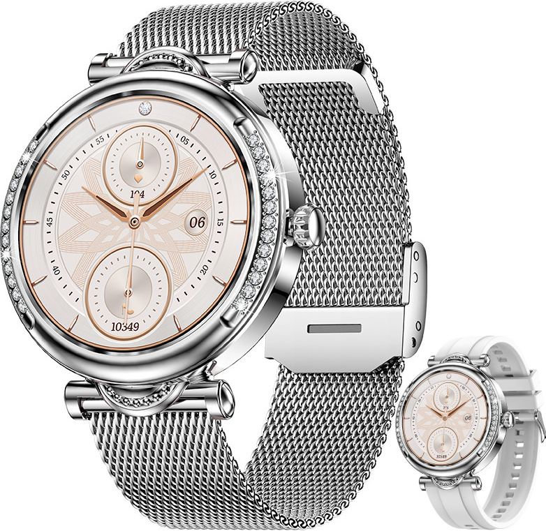 Smartwatch pour femme, montre cardiofréquencemètre avec tensiomètre, répondre/faire des appels, podomètre étanche pour téléphone Android iOS,femme,argent