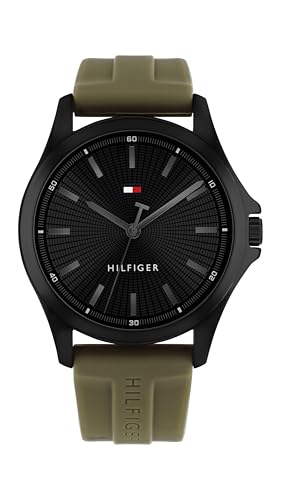 Tommy Hilfiger Bruce 1710741 Montre à quartz pour homme, boîtier rond, 42 mm, bracelet en silicone, vert, étanche, 30 m