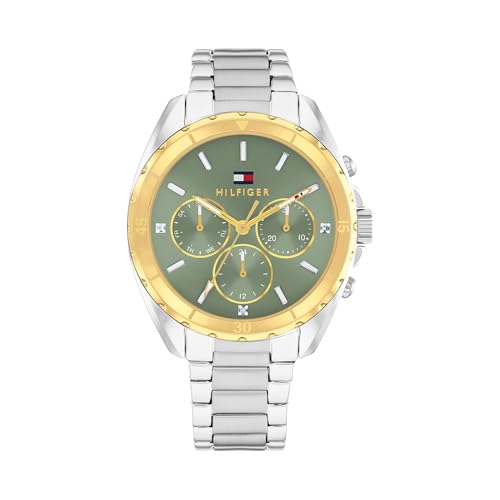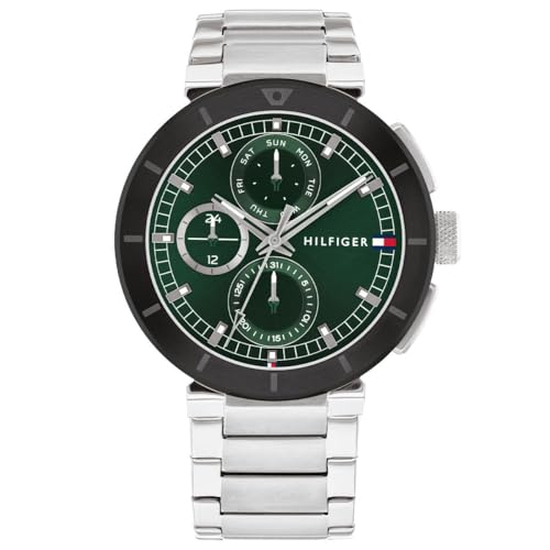 Tommy Hilfiger Montre Analogique Multifunction à Quartz pour Homme avec Bracelet en Acier Inoxydable, Green