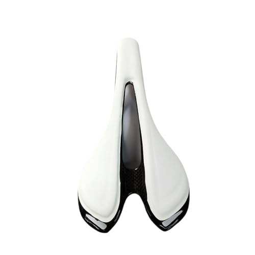 Selle de vélo de Montagne en PU + Fibre de Carbone for Hommes, Selle de Cyclisme TT Triathlon, siège de Course Confort Contre la Montre, Route, VTT, vélo(White)
