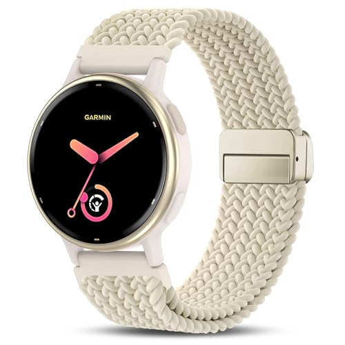 Laband Bracelet magnétique tressé de 20 mm pour montre Garmin Vivoactive 5/Vivoactive 6/3/3 Music/Venu Sq 2/Venu/Venu 2 Plus, bracelet en nylon souple et extensible pour Forerunner 55/165/645/245/570