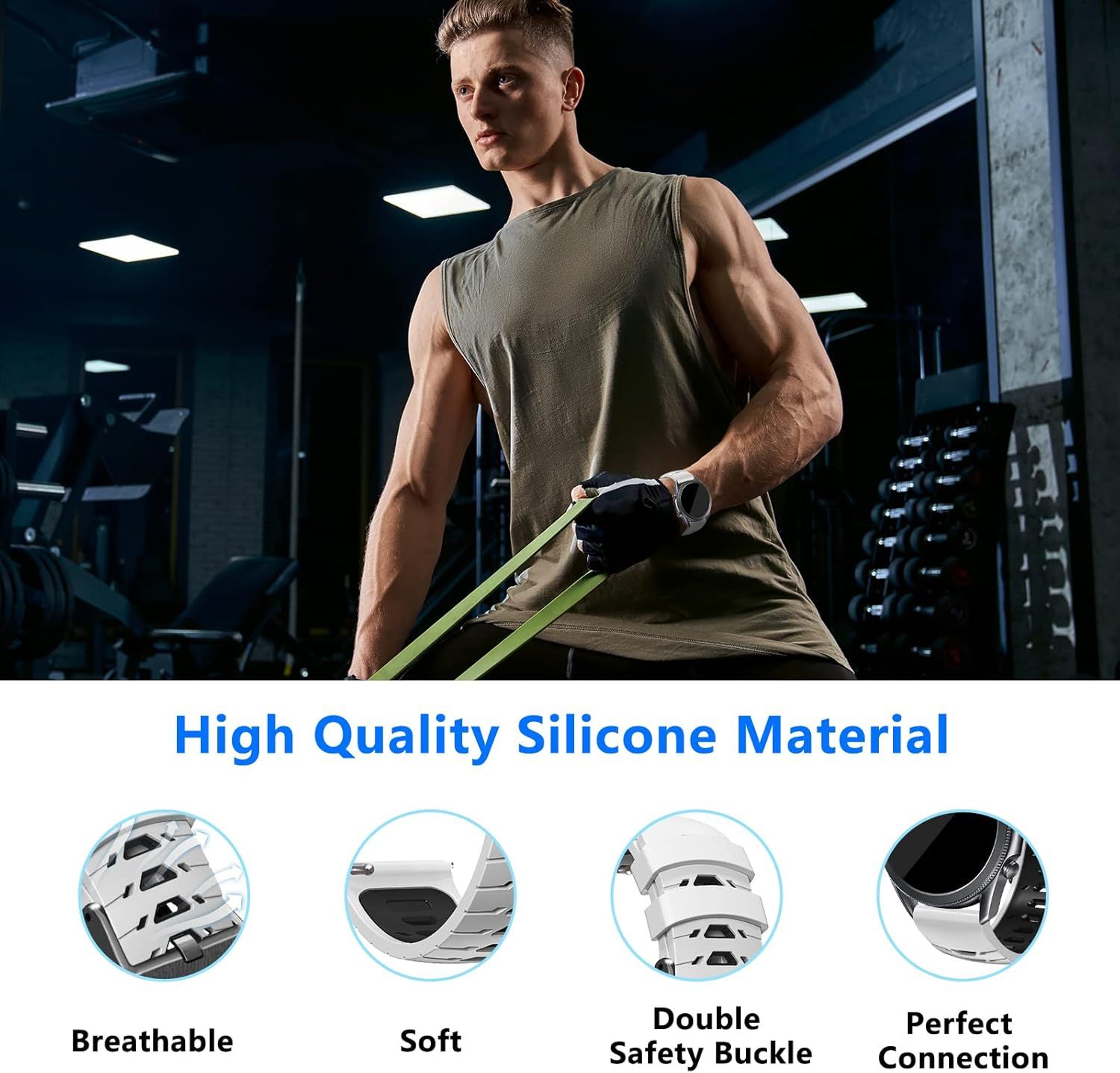 Silicone Bracelet Pour Largeur Pattes De Montre 22Mm, Homme Femme Respirant Réglable Sangle Sport Bracelet Pour Samsung Amazfit Huawei Garmin Xiaomi Montre - Blanc/Noir[LET9137069]