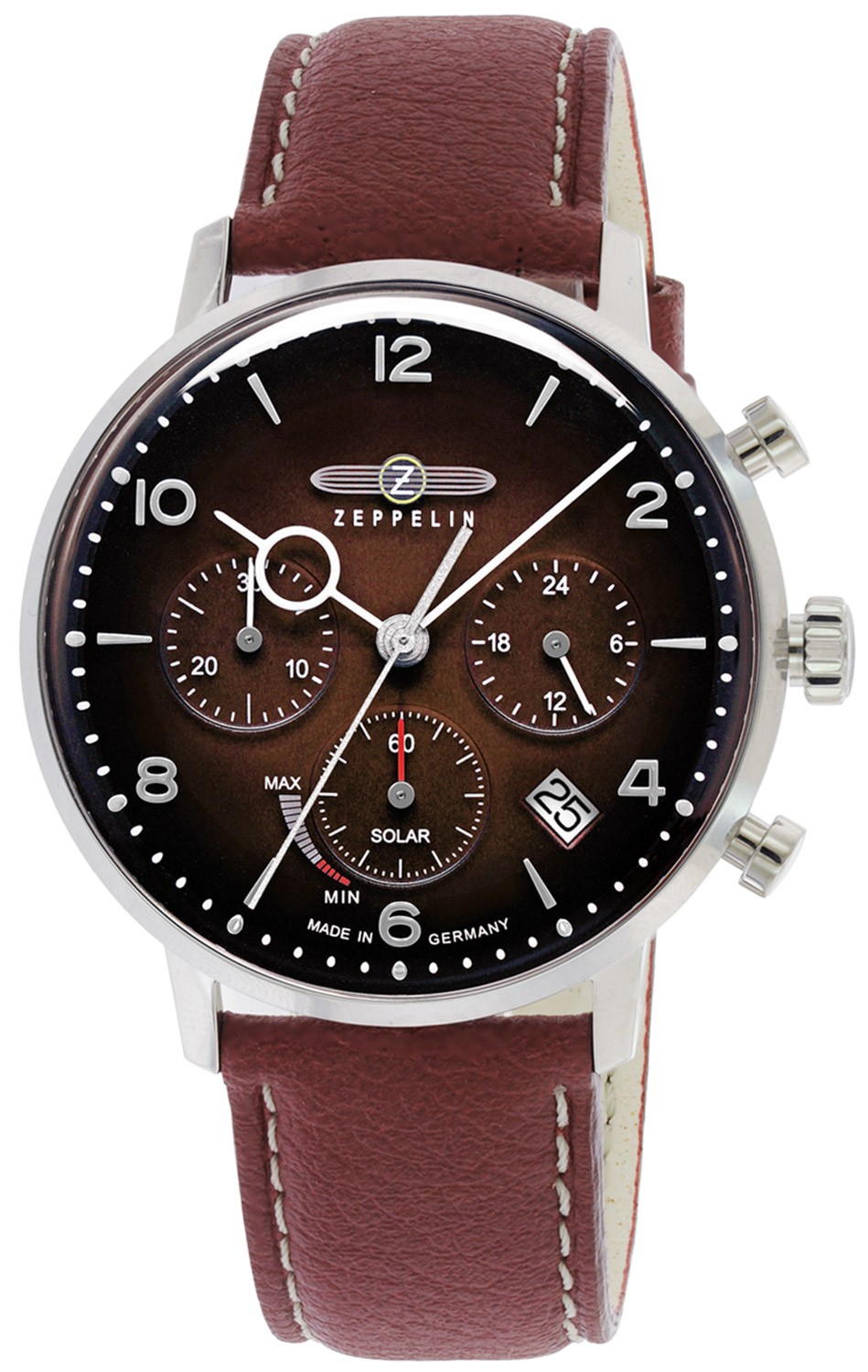 Zeppelin Montre Solaire Chronographe LZ129 Hindenburg Rouge Foncé Chrono 8086-2n