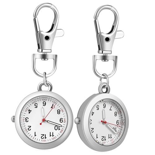 Hohopeti Montres de Poche à Clip Unisexe, Lot de 2 Montres à Aiguilles Lumineuses Boucle Porte-Clés, Mouvement Quartz Précis pour Professionnels de Santé
