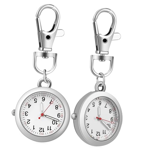 HANABASS Montres Pendentif à Clip pour Personnel Infirmier, Lot De 2 Montres De Poche Aiguilles Lumineuses Et Boucle Porte-clés, Adaptées pour Usage en Hôpital