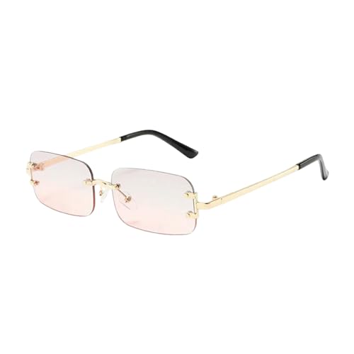 Gyios Lunettes De Soleil Rectangulaires sans Monture pour Hommes, Mode Vintage Dégradé Multicolore, Femmes-Or Gris Rose-comme Le Montre l'image