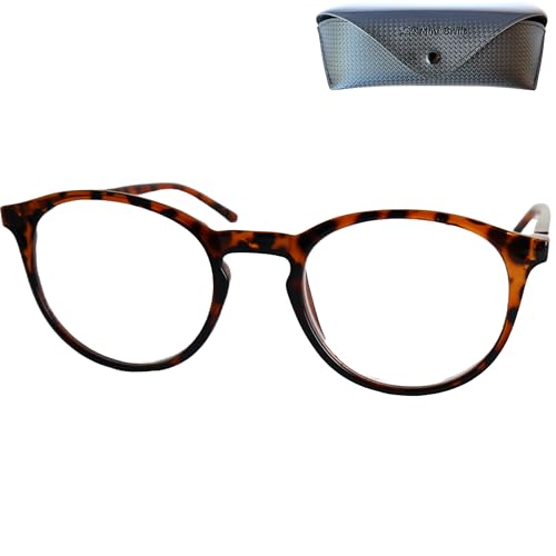 Mini Brille - Lunettes de Lecture au Verres Arrondis, Boîte Lunette Gratuit, Monture en Plastique avec des Détails en Métal (Écaille de Tortue Marron), Lunette Femme et Homme + 2.5 Dioptrie