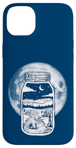 Moonshine Lover Jar Design - Bear, Moon & Mountains Coque pour iPhone 15 Plus