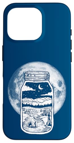 Moonshine Lover Jar Design - Bear, Moon & Mountains Coque pour iPhone 16 Pro