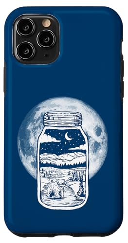 Moonshine Lover Jar Design - Bear, Moon & Mountains Coque pour iPhone 11 Pro